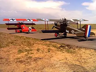 ![]() VAFM's Fokker Dr.1 and SE.5 taxiing at Platte Valley Airpark | |