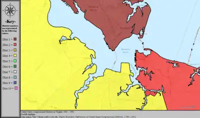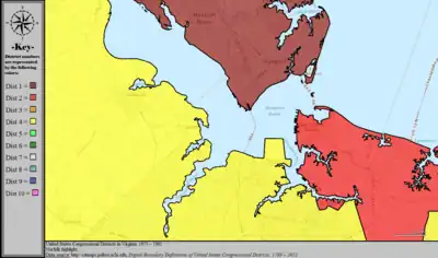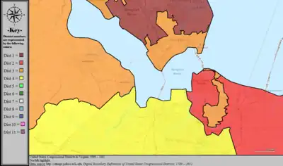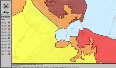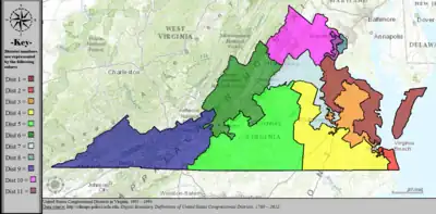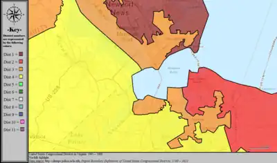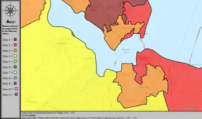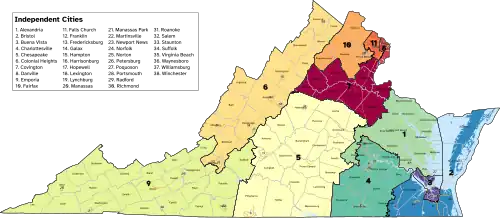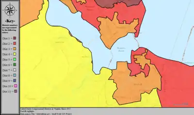 Virginia pre-2016 congressional districts were ranked the 5th worst in the country by one analysis[6] because counties and cities were broken into multiple pieces to create heavily partisan districts.[7]