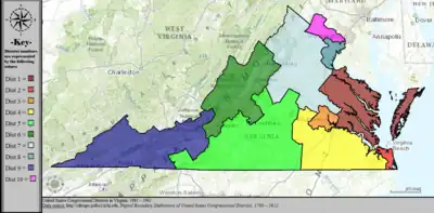 Table of United States congressional district boundary maps in the State of Virginia, are presented chronologically below for the most recent iterations following the redistricting of the 1960s, after the U.S. Supreme Court ruled that congressional and state legislative districts had to satisfy the one man, one vote criteria for equal representation. The state legislature had long delayed redistricting, leading to outsize influence by rural districts and under-representation of urban areas.[5] All redistricting events that took place in Virginia between 1973 and 2013 are shown.