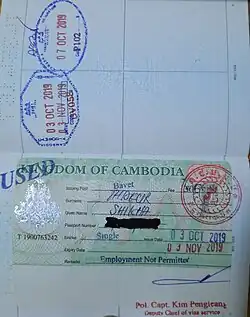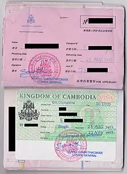 4. ^ "Visas - English Version | Ambassade Royale du Cambodge en France". www.ambcambodgeparis.info. Royal Embassy of Cambodia to France. Retrieved 28 May 2023.