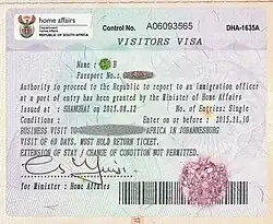 1. ^ "New visa rules will hurt tourism: DA – IOL News". Retrieved 8 March 2018.