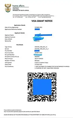 4. ^ "South Africa: SA eVisa System Launched in 14 Countries". allAfrica. 10 February 2022. Retrieved 26 February 2022.