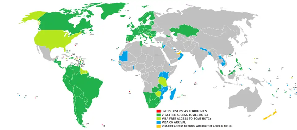 British Overseas Territories citizens (BOTCs) enjoy visa-free entry to a number of countries and territories. However, in some cases, foreign authorities only grant them a visa-free entry if they present a passport with an endorsement stating their right of abode in the United Kingdom.