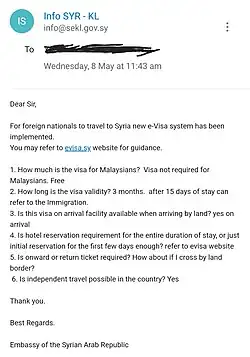 | Online Visa / Visa on arrival[40][41] | 1 month | ||