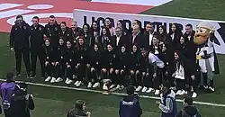 Vitória S.C. women’s team and staff with their Second Division trophy at the Estádio D. Afonso Henriques, May 2025.