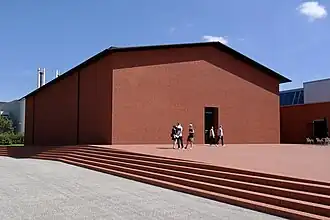 The Vitra Schaudepot was imagined as a museum space to showcase much of the Vitra Design Museum's collection, totaling over 7,000 pieces, while the latter building, designed by Frank Gehry, was used for temporary exhibitions.[6] Designed by Swiss architecture firm Herzog & de Meuron, the building is made of bricks, with a gabled roof, and bears an industrial appearance kept from the old factory building before, with expansive interiors for both permanent and temporary setups.[7][8][9]