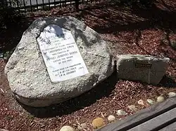 The 1905 plaque in the grounds of the Cathedral of San Carlos Borromeo marking the site where the preserved remains of the tree once stood