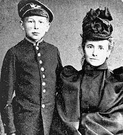 Nagevičius was born in Kretinga, then part of the Russian Empire, on 17 June 1880.[1] He was born in a family of a Samogitian noble who worked as a customs officer.[3][7] His mother Marija Magdalena Eitavičiūtė owned a bookstore in Kretinga.[3][7] Two sisters of Nagevičius died as children.[3] His father died soon after he was born.[3] After receiving his primary education in Kretinga, Nagevičius studied at Palanga Progymnasium but was expelled for refusing to participate in Orthodox Church prayers.[2] He continued his studies at the Alexander Gymnasium in Riga, where he became involved in Lithuanian activities through Kipras Bielinis.[2]