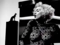 Initial reaction towards the video was positive. Edna Gundersen from USA Today called the visual "camp, glamour, sensuality and dress-you-up finery" and found Madonna's look in the video similar to that of Marilyn Monroe.[113] Harriet Swift of Oakland Tribune shared a similar opinion, writing that Madonna had "never looked more like Marilyn Monroe than in this film, with her white-blond hair no rebelliously declasse dark roots showing this time", and considered that the clip was "so much slicker and more stylized than any other Madonna video", noting its "stylish camera angles, extremely sophisticated film editing and freeze-frame body posing", looking as if it "could have been photographed by the late Robert Mapplethorpe with its cool, glamorous surfaces and penchant for classical motifs."[114] Liz Smith, a journalist from New York Daily News, also compared Madonna in the video to Monroe, as well as Harlow and Dietrich, and noted that in contrast to her previous music videos, "this one won't outrage and cause controversy", as the singer was "dressed to the teeth" with "no religious imagery and no vulgarity" that "even an old-fashioned mother might love", she concluded.[115] David Barton from McClathy News Service felt that the scene where Madonna appears wearing a see-through sheer lace dress was "a move certain to arouse controversy, a long established Madonna tactic", and wrote that the video "manages to position Madonna once again, at least in the eyes of the mainstream audience, as on the cutting edge of popular culture."[116]