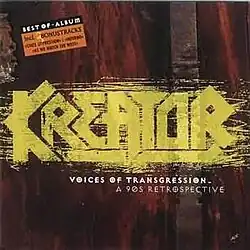 Voices of Transgression – A 90s Retrospective is a compilation album by German thrash metal band Kreator. It was released in 1999 by GUN Records. This "best of" collection, compiled by Mille Petrozza, includes only songs from the band's albums recorded in the 1990s and features three previously unreleased songs: "Inferno", "As We Watch the West" and "Lucretia (My Reflection)" which was originally written and performed by The Sisters of Mercy.