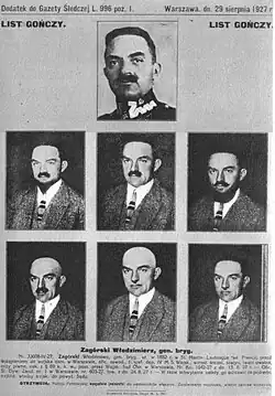 Włodzimierz Zagórski of the Clan of Ostoja[1] (January 21, 1882 – disappeared August 6, 1927) was a Polish brigadier general, military intelligence soldier of the Austro-Hungarian Army, staff officer and aviator.