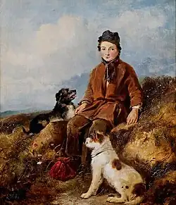 While little is known of his W. W. Morris's life, by just eighteen years of age he was demonstrating high artistic skill, with one work, "The Task" (1850), displayed by the Royal Academy of Arts (RAA). His acclaim grew during his twenties and thirties, with additional works being exhibited by the RAA, including "The Match Seller" (1851), "The Pets" (1854), "Left in Charge" (1855), "The Shepard's Devotion" (1855), "The Gamekeeper's Son" (1856), and "Sketches from Life" (1867). Not surprisingly, his works were often exhibited alongside his father's, who himself between 1851 and 1862 had nine works exhibited by the RAA, a number of these coinciding by date and location with W. W. Morris's own works.[4] W. W. Morris's brother Alfred Morris also exhibited works at the RAA, and many of his works have survived in private collections and sold at auction in both Europe and the United States.[5]