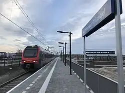 Waddinxveen Triangel railway station is a railway station in Waddinxveen, South Holland, Netherlands that opened on 12 February 2018.[1] It is situated on the Gouda–Alphen aan den Rijn railway, which connects Gouda and Alphen aan den Rijn, 1,5 kilometre south of Waddinxveen railway station.[2] Trains running on the line are R-net Stadler FLIRTs.
