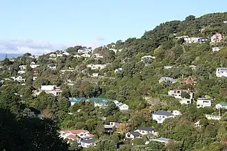 It is a residential suburb overlooking Thorndon and the Ngaio Gorge from the northern flanks of Te Ahumairangi Hill (formerly Tinakori Hill). The suburb is hilly and includes Weld Street reportedly one of the steepest streets in Wellington.[3] Wadestown's streets are picturesque and narrow — 10 metres (33 feet), half a chain, made by pick and shovel and horse and scoop.[4]