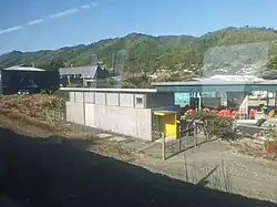 A goods shed was built in 1895 and rebuilt in 1979. The platform was extended in 1897 and the station was improved in 1909, so that by 1911 it had a shelter shed, platform, cart approach, 25 ft (7.6 m) by 12 ft (3.7 m) goods shed, loading bank, cattle and sheep yards and a passing loop for 59 wagons (extended in 1940 to 90 wagons). From 1908 a tablet was used. A ladies waiting room was added in 1929, detached from the station building, for £214.14.6.[8] Electric lights replaced oil at about the same time.[9] Railway houses were built in 1892, 1928, 1930 and two in 1940. A new 24 ft (7.3 m) by 12 ft (3.7 m) station building, with an office, signal control panel, and accommodation for parcels was built by NZR staff, slightly to the south of the existing building, in 1968. The stockyards were removed in 1965.[8] The station closed to goods traffic on 3 May 1986.[10]