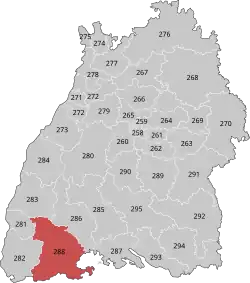 Waldshut is an electoral constituency (German: Wahlkreis) represented in the Bundestag. It elects one member via first-past-the-post voting. Under the current constituency numbering system, it is designated as constituency 288. It is located in southwestern Baden-Württemberg, comprising the Waldshut district and the eastern part of the Breisgau-Hochschwarzwald district.[1]
