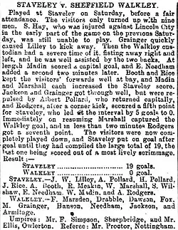 Walkley's 19–0 defeat at Staveley in the 1890–91 FA Cup qualifying, Sheffield Independent, 6 October 1890