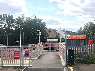 Walthamstow Queen's Road railway station is a London Overground station on the Suffragette line between Blackhorse Road and Leyton Midland Road stations, 8 miles 7 chains (13.0 km) down the line from Gospel Oak. It is in Zone 3.