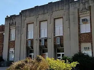 Washington Junior High School and Jefferson Grade School is an historic school building located in Clinton, Iowa, United States. Des Moines architects Karl Keffer and Earl E. Jones designed the building in the Art Deco style.[2] A. H. Morrell served as the associate architect. The original portion of the building was constructed from 1933 to 1935 by Ringland-Johnson Company. It is a large, two-story structure with a brick exterior and stone trim and accent panels. The relief of geometric designs at the entry is of particular interest.[2] Additions were added to the rear of the building in 1952 and in 1972. A contemporary Jefferson Elementary School was built on the same property and replaced this school building in 2006.[3] The building was used as a middle school until late 2014 when a new Clinton Middle School was completed. The former school building was listed on the National Register of Historic Places in 2015. Plans call for the building to be converted into senior apartments.