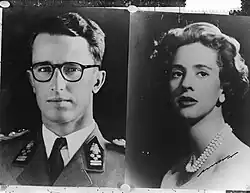 The engagement was announced on 16 September 1960 by Gaston Eyskens, Prime Minister of Belgium.[2] Afterwards, the couple met the press in the gardens of the Castle of Laeken. The news came as a pleasant surprise to the Belgian people, who were not aware the King and Doña Fabiola were courting.[3][4]