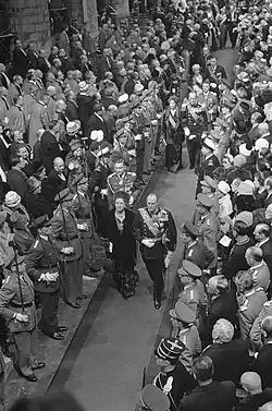 The religious service was conducted by Jozef-Ernest Cardinal van Roey at the Cathedral of St. Michael and St. Gudula. Giuseppe Cardinal Siri read a personal message from Pope John XXIII.[6]