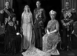 - Lady May Cambridge (17), daughter of Princess Alice and Earl of Athlone, niece of Queen Mary and therefore first cousin of the groom;