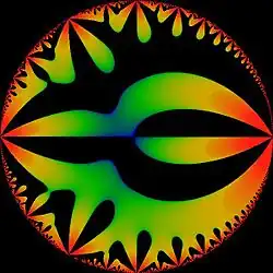 The imaginary part of the invariant g3 as a function of the square of the nome q on the unit disk.