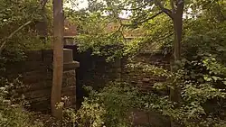 The station booking office was located on the now exposed area of the bridge abutment tops, the bridge having been widened to enable the road and booking office to both sit on top of it