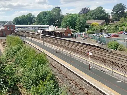Wellington railway station serves the town of Wellington, Shropshire, England. It is situated on the former Great Western Railway's London Paddington to Birkenhead via Birmingham Snow Hill line. Trains are operated by West Midlands Railway (who manage the station), and Transport for Wales.