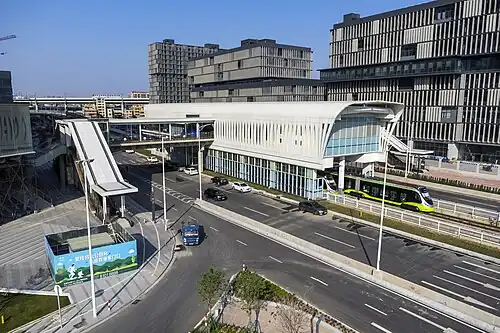 1. ^ a b 李传智 (2022-11-28). "11月29日中午12时!南海有轨电车1号线后通段开通" [At 12:00 noon on November 29, the rear section of Nanhai Tram Line 1 opened]. Guangzhou Daily (in Simplified Chinese). Archived from the original on 2022-11-28. Retrieved 2024-08-03.