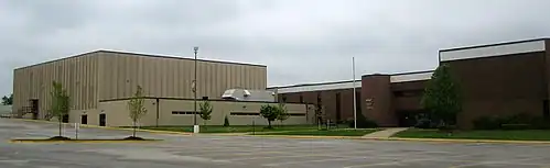 View of Holt High School from the South, with main gymnasium to the left and C.H. Jones Auditorium to the right