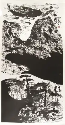 Beginning in 2001, Tongson started to experiment with finger painting. By 2009, he had virtually ceased using brushes.[6]: 58 He adopted “Mountain Taoist” (Chinese: 山斗道人; pinyin: Shandou Daoren) as his sobriquet,[8] which he used to sign his finger paintings,[5] such as Plum 5 (2011) and Spiritual Mountains 7 (2012).[9]