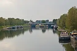 Panheel Lock is the only lock on the canal. It is a double lock consisting of the original Panheel Lock, and a more recent larger lock next to it. The canal pound close to the Meuse has a much lower level than that west of Panheel Lock.