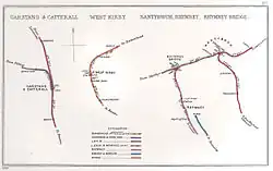 A 1903 Railway Clearing House junction diagram showing (centre) railways in the vicinity of West Kirby (present station on left; C&BR station on right)