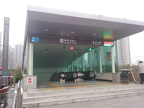 West Meixi Lake station is a subway station in Yuelu District, Changsha, Hunan, China, operated by the Changsha subway operator Changsha Metro. It entered revenue service on December 28, 2015.[1][2]