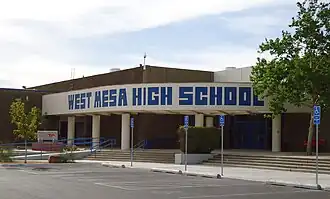 West Mesa High School (WMHS) is a Public School in Albuquerque, New Mexico, located on the west side of the city (West Mesa). It is a part of Albuquerque Public Schools. The school colors are scarlet, royal blue and white, and their mascot is the Mustang.[2]