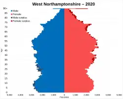 4. ^ a b UK Census (2021). "2021 Census Area Profile – West Northamptonshire Local Authority (E06000062)". Nomis. Office for National Statistics. Retrieved 12 February 2024.