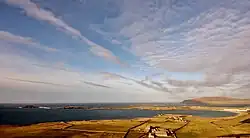 On the west side of the voe is the settlement of Scatness, while on the east side is the famous Jarlshof archaeological site.[1] There are Late Mesolithic and Early Neolithic remains at West Voe.[2]