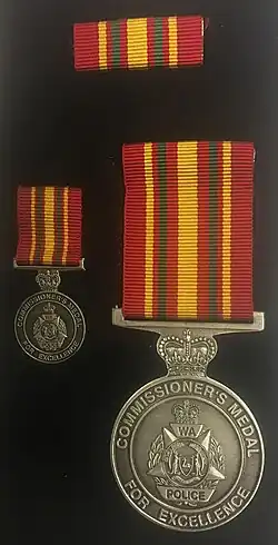 The Western Australia Police Commissioner's Medal for Excellence was established to recognise Western Australia Police personnel who have consistently contributed to the achievement of the goals and objectives of the Western Australia Police.