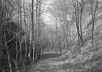 Western Maryland Railroad Right-of-Way, Milepost 126 to Milepost 160 is a historic section of the Western Maryland Railway (WM) in Allegany County, Maryland, and Morgan County, West Virginia. It is an abandoned 34-mile (55 km) section of the right-of-way between milepost 126 at the intersection of the Chesapeake and Ohio (C&O) Canal and Long Ridge Road, Woodmont, and milepost 160 just west of Maryland Route 51, North Branch. It closely parallels the Potomac River and the C&O Canal, which runs along the north bank of the river, and includes three tunnels. Seven miles of the roadbed are in West Virginia near Paw Paw.[2]