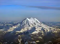 Beyond the valleys lie the Sierra Nevada in the south and the Cascade Range in the north. Mount Whitney, at 14,505 feet (4,421 m) the tallest peak in the contiguous 48 states, is in the Sierra Nevada. The Cascades are also volcanic. Mount Rainier, a volcano in Washington, is also over 14,000 feet (4,300 m). Mount St. Helens, a volcano in the Cascades, erupted explosively in 1980. A major volcanic eruption at Mount Mazama around 4860 BC formed Crater Lake. These mountain ranges see heavy precipitation, capturing most of the moisture that remains after the Coast Ranges, and creating a rain shadow to the east forming vast stretches of arid land. These dry areas encompass much of Nevada, Utah, and Arizona. The Mojave Desert and Sonoran Desert along with other deserts are found here.