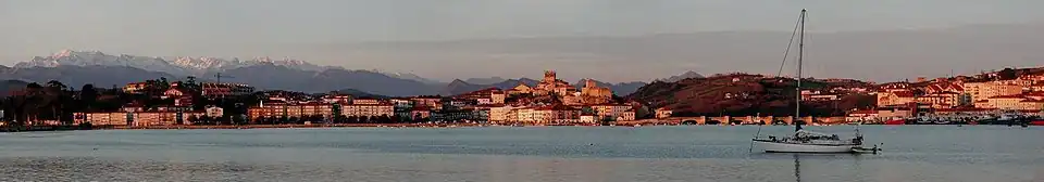 Panorama of San Vicente de la Barquera, with Picos de Europa on the background