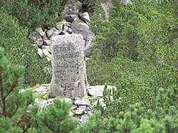 Outside of the military traditions, the mountaineer's swastika also influenced a number of other symbols and logos used on Polish soil. Among them were the logo of the IGNIS publishing company (est. 1822), and the personal symbol of Mieczysław Karłowicz, a notable composer and admirer of the Tatras. After his death in the mountains in 1909, the place of his death was marked by a memorial stone and a swastika.[32]