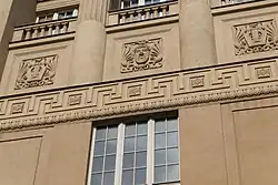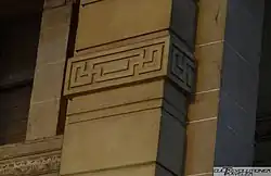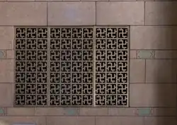 The original Penobscot Building in Detroit, Michigan, completed about 1906, "was named after the Penobscot Indian tribe and region of Maine, the boyhood home of one of the investors. An interesting feature in the Indian-themed detail of the building is the occasional appearance of a swastika, a symbol important to the Penobscots long before it was adopted by the Nazi party."[69] The decorative symbols feature right-facing arms and are tilted in the same manner as the Nazi flag, leading to confusion over their origin.