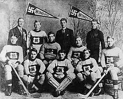 In Windsor, Nova Scotia, there was the Windsor Swastikas ice hockey team from 1905 to 1916, and their uniforms featured swastika symbols. There were also hockey teams named the Swastikas in Edmonton, Alberta (circa 1916), and the Fernie Swastikas in Fernie, British Columbia (circa 1922).