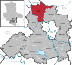 Wettin-Löbejün (German pronunciation: [vɛˈtiːn løːbəˈjyːn]) is a town in the district Saalekreis, in Saxony-Anhalt, in east-central Germany. It was formed on 1 January 2011 by the almagamation of the former municipalities Löbejün, Wettin, Brachwitz, Döblitz, Domnitz, Gimritz, Nauendorf, Neutz-Lettewitz, Plötz and Rothenburg.[3] These former municipalities and Dößel are now the 11 Ortschaften or municipal divisions of the town.[4]
