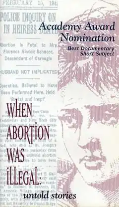 When Abortion Was Illegal: Untold Stories is a 1992 American short documentary film directed by Dorothy Fadiman. It was nominated for an Academy Award for Best Documentary Short.[3][4] The film consists of first person stories which reveal the physical, emotional and legal consequences of having or providing an abortion when it was a criminal act. The film is the first of three films called the Reproductive Rights Trilogy or "From the Back Alleys to the Supreme Court & Beyond."
