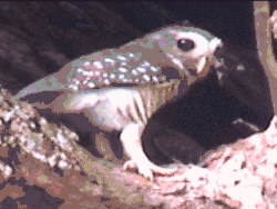 White-browed owl gives food to mate at the Berenty Reserve in 2003