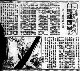 - ^ The date conforms to the data published in Chen Zhenhui (陳鎮輝), Wuxia Xiaoshuo Xiaoyao Tan (武俠小說逍遙談), 2000, Huizhi Publishing Company (匯智出版有限公司), p. 58.