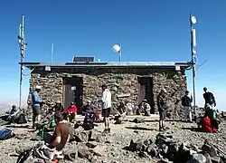 Hikers resting at the summit hut on the 2018 open gate day.